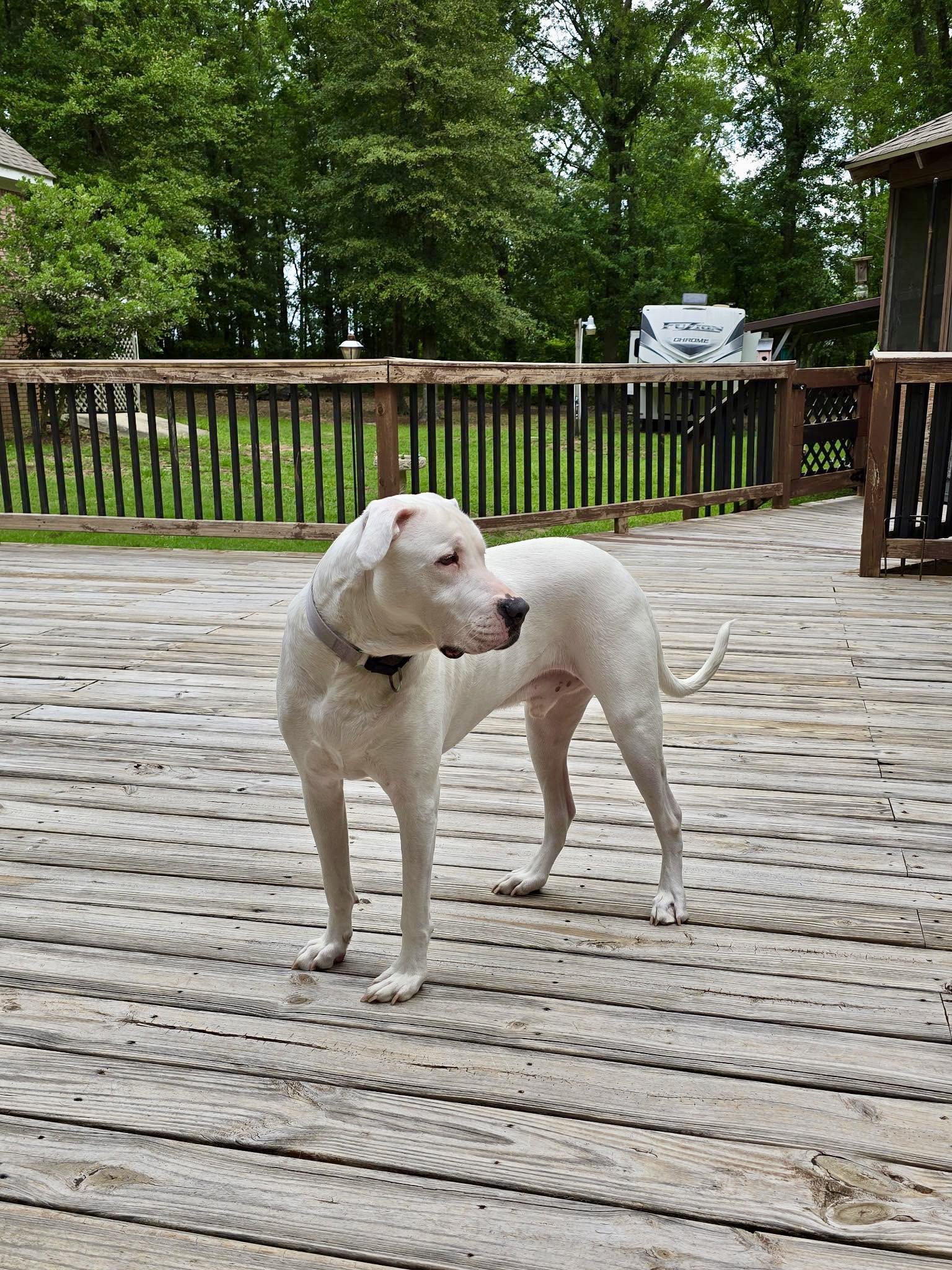 Atticus just turned 4, born on 2/22/22. House/crate trained. Solid white, blue eyes. Approx 80 lbs of love, protection, companionship, & cuddles. A big lap dog. He knows all the basic commands, but also responds to just talking to him like he’s a person. Lives inside the house & enjoys being outside. He has a loving/sweet personality. He’s good with our cats & other dog (available for adoption). Great on a leash. Sweet with all ages. No known health problems/current rabies expires March 2026.