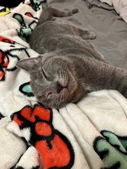 Very vocal about attention, sweet but also timid. Good around small dogs, never been around big dogs. Loves toys, sitting in window sills and on perches. Litter box trained, is okay about being outside but he doesn’t really know what to do when being out there. He loves getting attention, and he will tell you when he wants it!