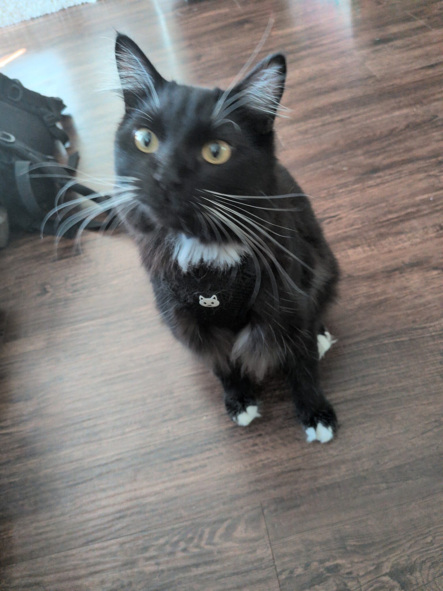 He is litterbox trained and very sweet. He's a long hair who is very fluffy, and he loves pets