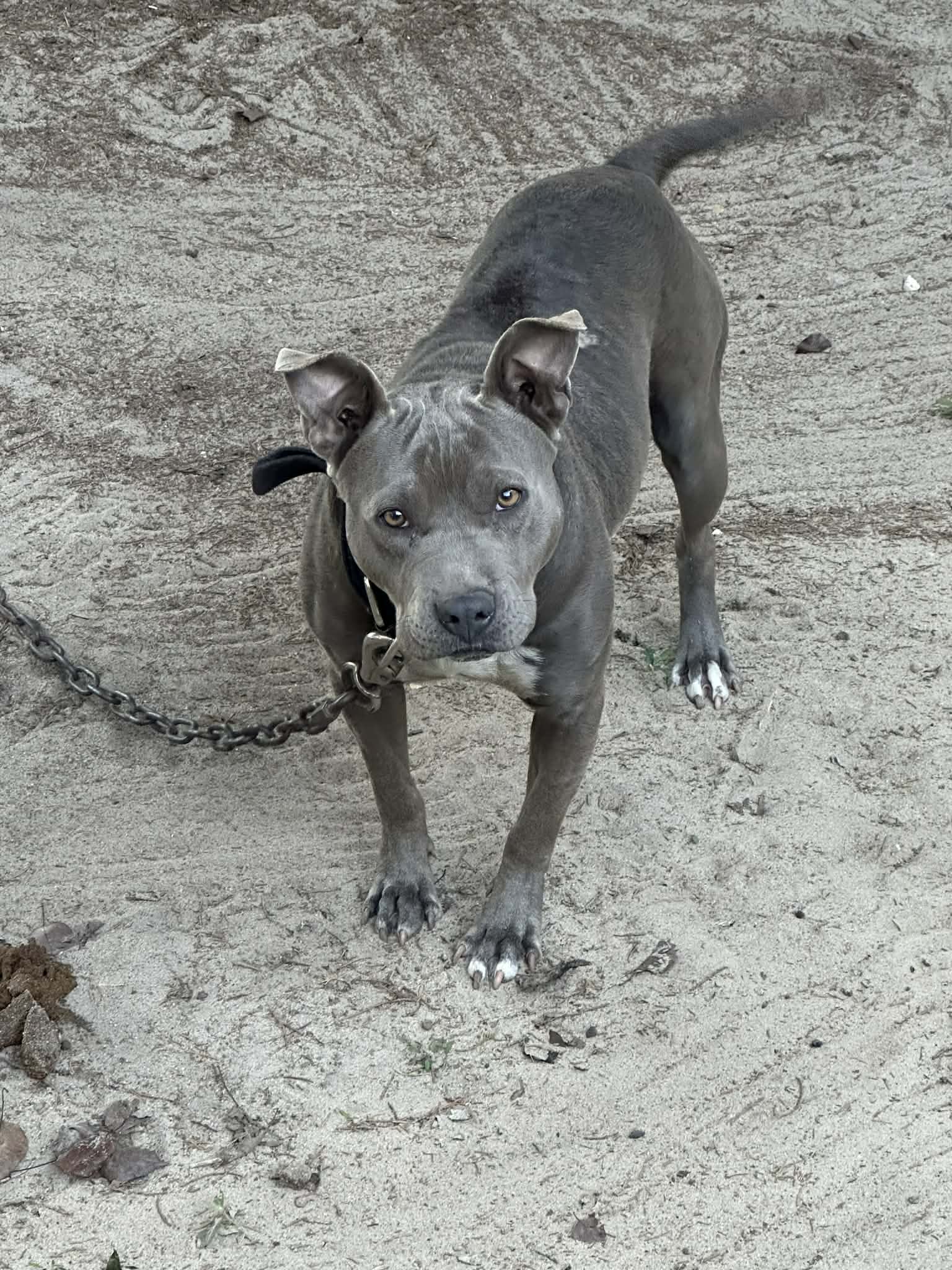 Basic Identification: Age: close to a year or a lil over a year Breed: pitbull Gender: male Weight: don’t know Name: demon Health and Medical History: Proof of vaccinations: he does have paperwork on him that will go with him on everything on him Microchip number: he doesn’t have a microchip He is friendly to people and other pets including farm animals He is not food aggressive