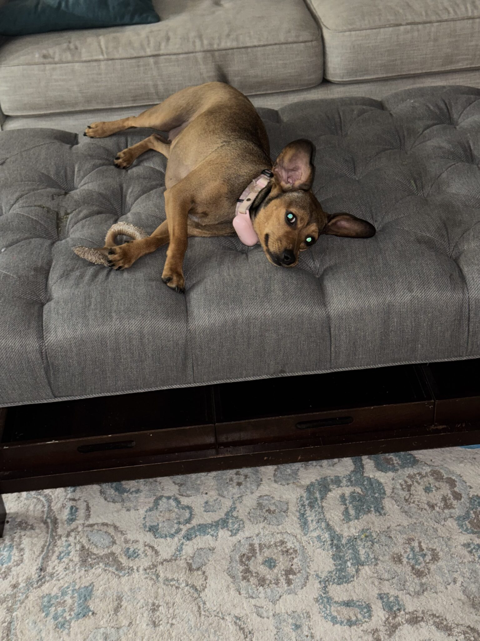 This dog wondered up to our home. We had it dewormed and got all of its shots up to date. We are not able to give it the proper attention it needs at this time. She loves being outside and is house trained.