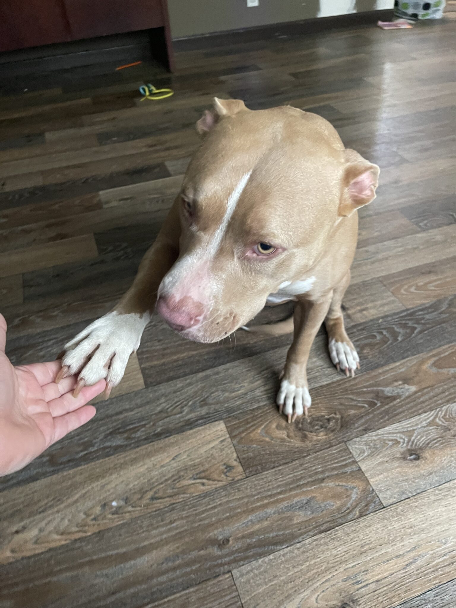 She is good with kids. She is fully house trained. She is good with other dogs we never had an issue. I am not sure how she does with cats. Spayed and vaccinated.