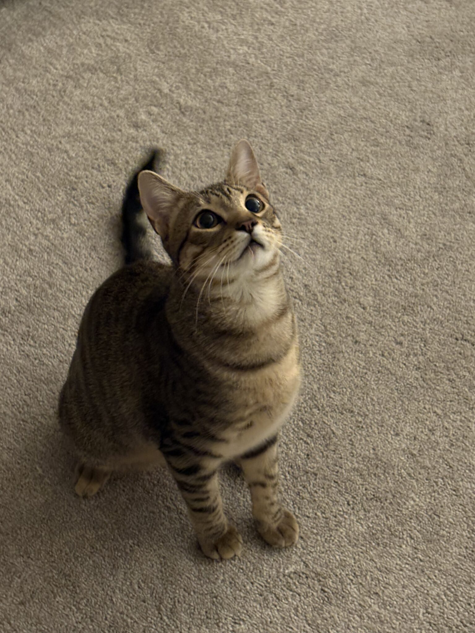 We found Zim on the streets less than a year ago. He was just a kitten. We took him, providing temporary housing. We had him cleaned, fixed, and got him his shots. We hoped to find him a permanent home but have had no luck. He’s lived with us and our two other female cats this past year. He is good with other cats, super playful, and a hearty appetite for a growing boy! He is litter box trained and loves a bed time cuddle!